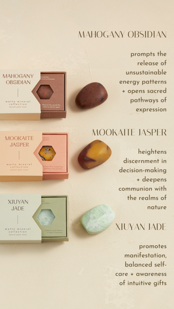 Palm stones are 2”- 3” smooth ovular stones, meant to be held in the palm of the hand to receive healing energy. These stones can be used to assist in focus, self-soothing practices, and meditation. The PURE Matte Mineral Collection features a line of Natural Palm Stones inspired by smooth river rocks organically tumbled over time. The soft, matte finish is a sophisticated take on the traditional polished palm stone. Each stone type is curated based on its metaphysical properties. Palm stones serve as natural tools for enhancing one’s wellness practice.