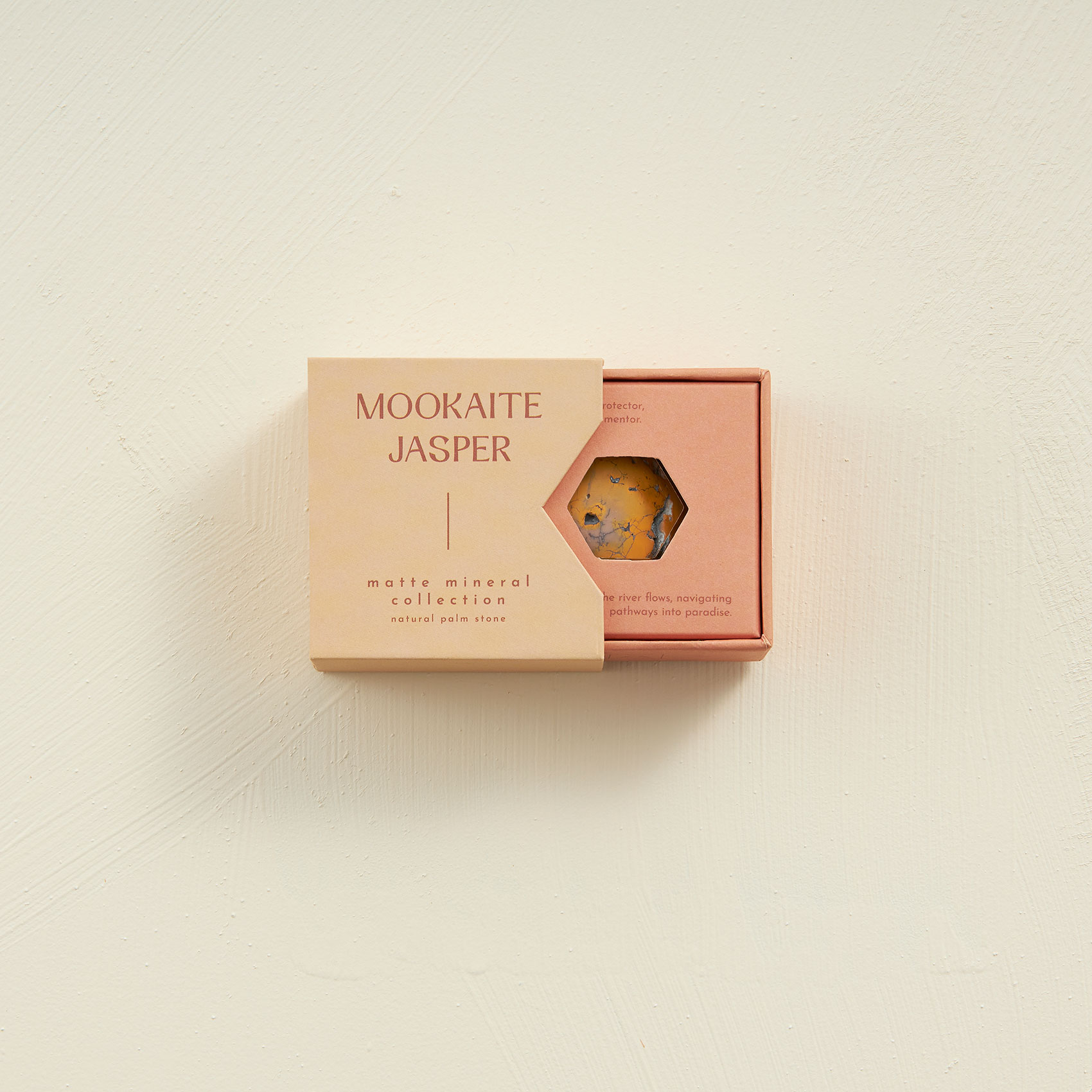Our Matte Mineral Collection features a line of Natural Palm Stones inspired by smooth river rocks organically tumbled over time. These palm stones can be used to assist in focusing attention, self-soothing practices, and meditation. The soft, matte finish is a sophisticated take on the traditional polished palm stone. The mookaite jasper crystal was selected based on its properties to serve as natural tool for enhancing wellness and mindfulness practices. This product is part of our PURE Earth Collection.