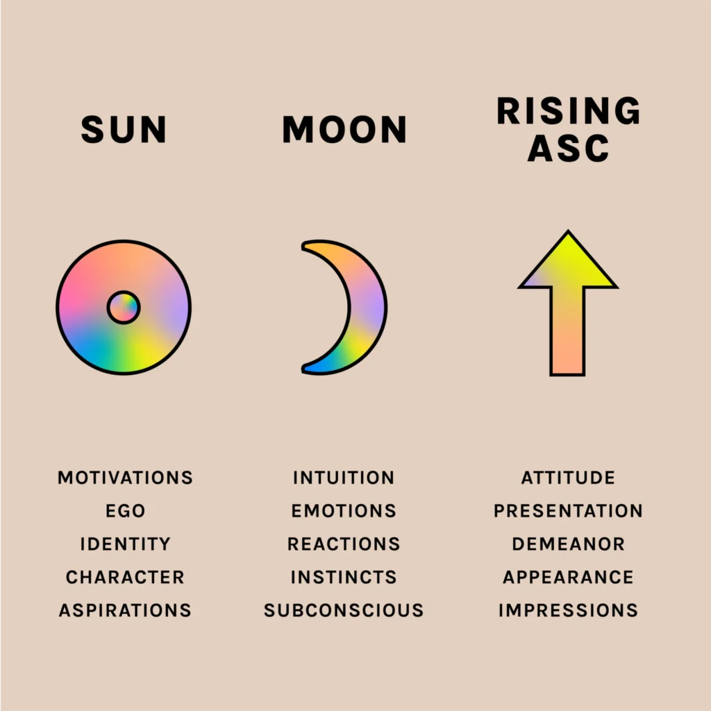 Your “big 3” is made up of the sun, moon, and rising placements of your birth chart. Each placement affects different facets of your personality and life experience. To discover your “big three,” search “zodiac birth chart calculator” and choose one of the top links. Be ready with your birthdate, time of birth, and city you were born in!